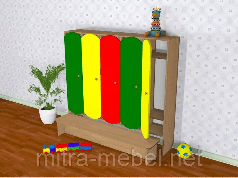 Шкаф детский 5-ти секционный с лавкой цветной (1520*300*1400h)