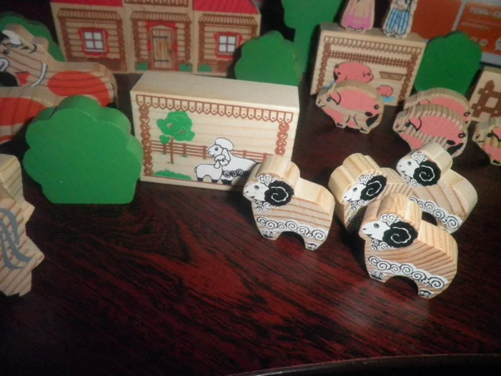 строить для них фермы, пасти,кормить и т.д. Деревянные игрушки
