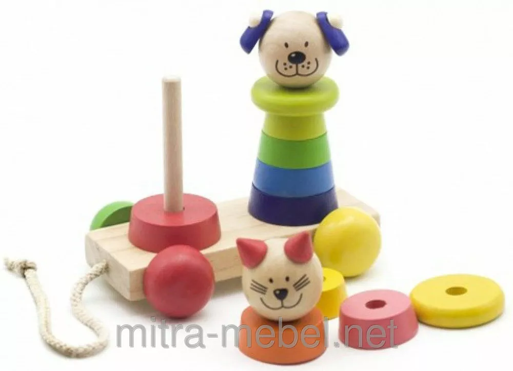 Детская пирамидками-каталочка "Котик+собачка"