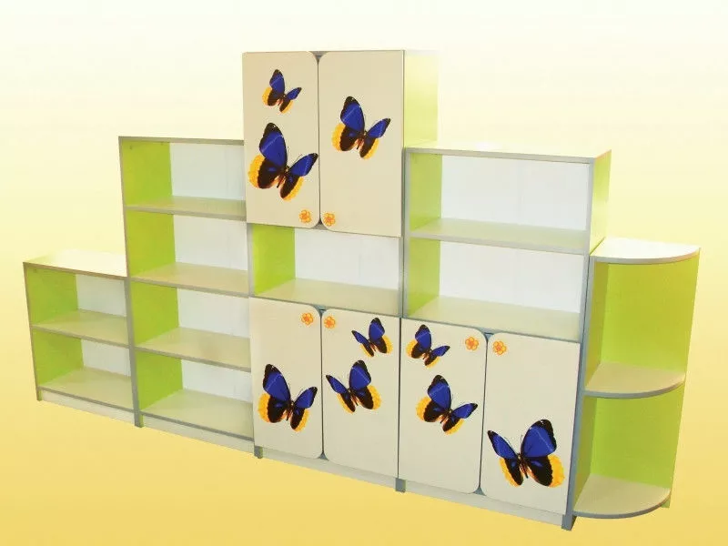 пять элементов, на дверцах нанесен 3-D рисунок в виде бабочек. Эта
