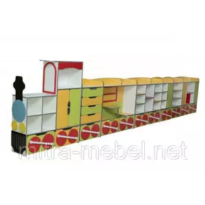 Стенка для игрушек "Сказочный Экспресс" - отличное решение для оснащения детского сада или дома. Она выполнена в оригинальная и современном стиле, станет украшением интерьера. Множество полочек и отделений позволит хранить игрушки, книги, учебники, канцелярию и другие детские принадлежности.