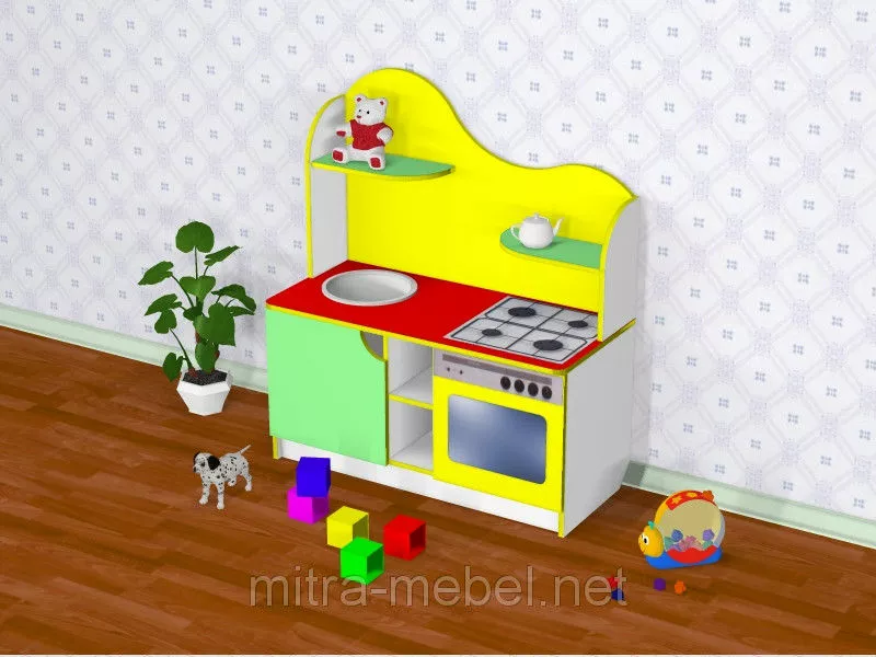 малышам представить себя в роли кулинара. Яркие цвета кухни делают