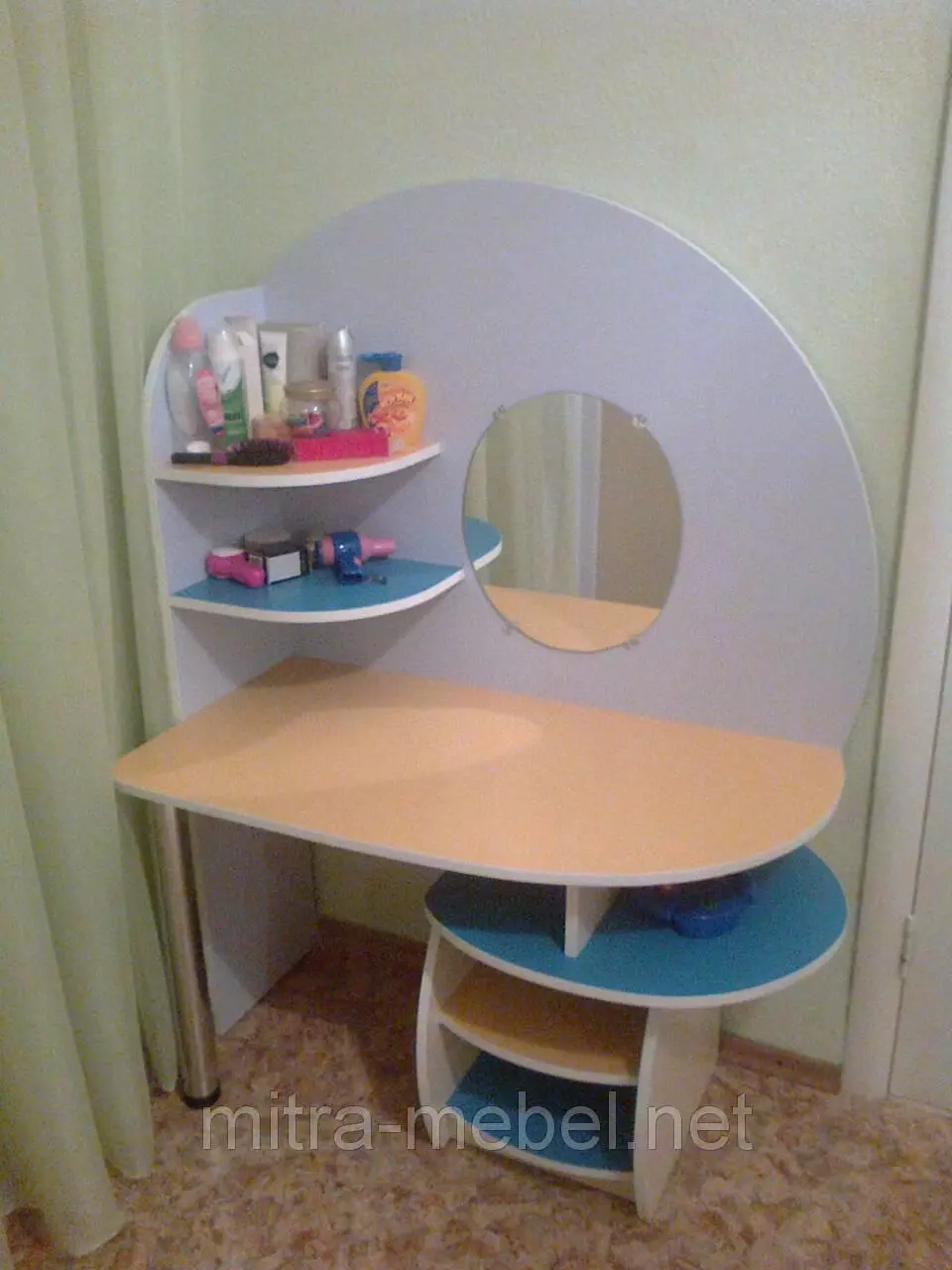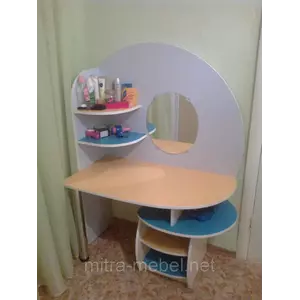 ?зготовлена из ламинированного ДСП толщиной 16 мм, хромированная металлическая стойка. Торцы оклеены кромкой ПВХ 1мм.