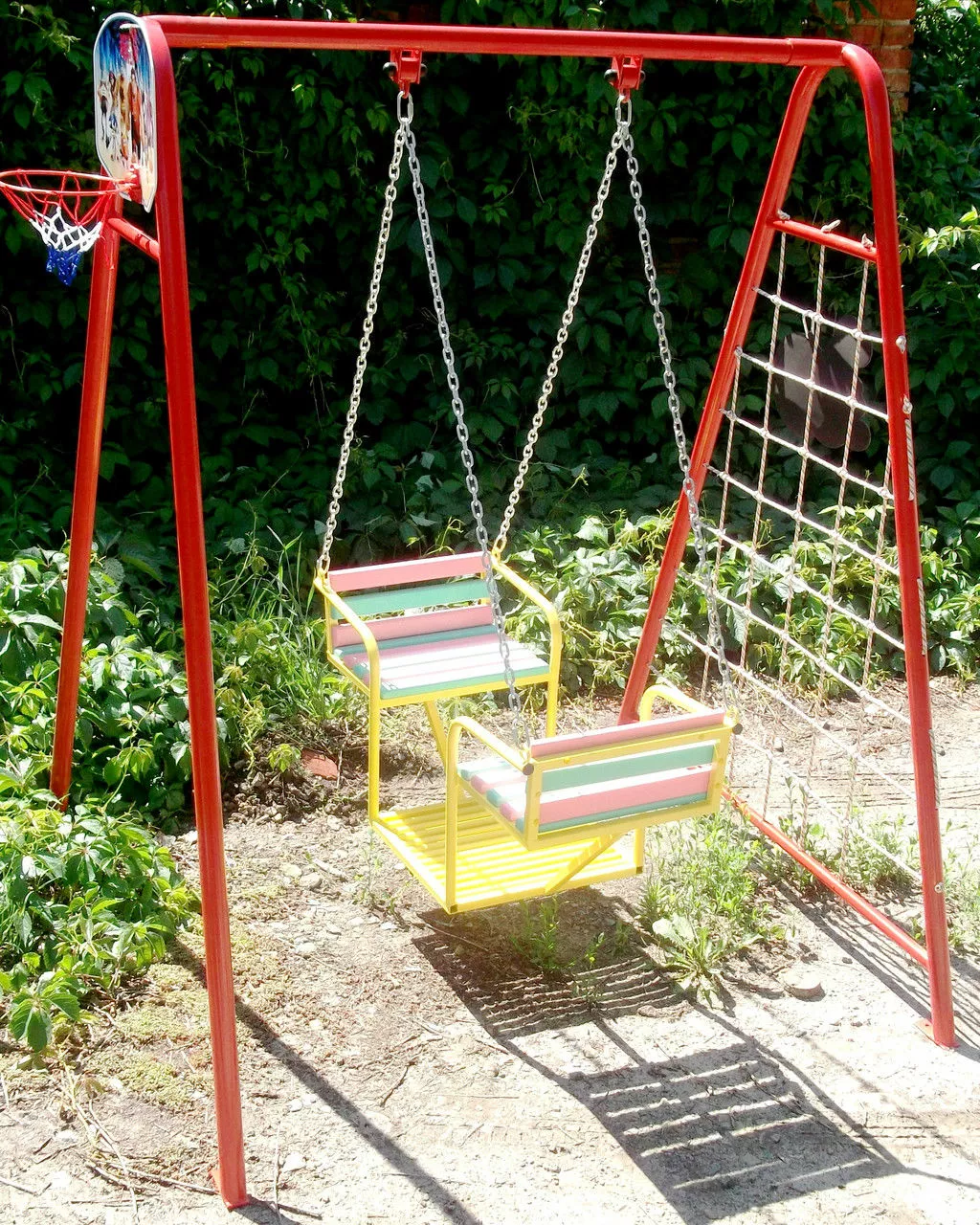 Комплектация: качели на цепях для двух детей, баскетбольное кольцо,