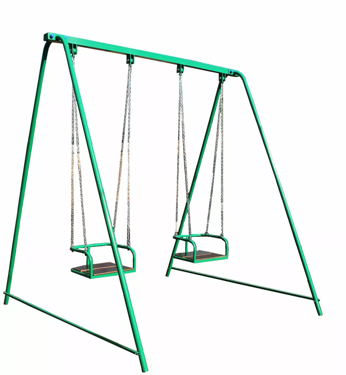 Две одноместные качели на цепных креплениях на одной перекладине