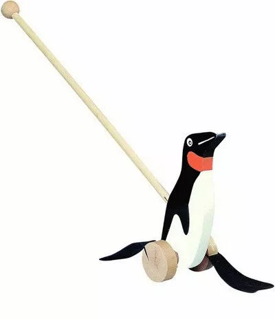 выступит каталка «Пингвин». Малыш толкает игрушку – ее колесики