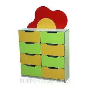 Предлагаем Вам детский комод №6 из серии "Цветочная Поляна". Он предназначен для оснащения игровой зоны детского сада или дома. Яркий и красочный, станет прекрасным дополнением интерьера, создаст приятную атмосферу. Множество ящиков позволит компактно хранить игрушки, книги, учебники, канцелярию и другие детские принадлежности.