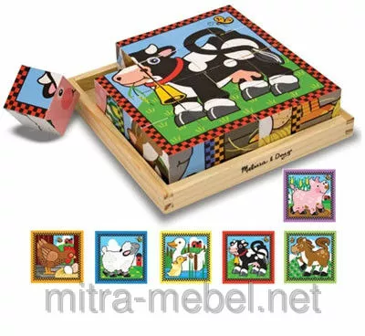 Яркие большие деревянные кубики «Ферма» – игрушка 6 в 1. ?з 16