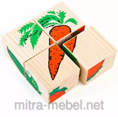 Кубики из серии «Сложи рисунок: овощи» состоят из четырех