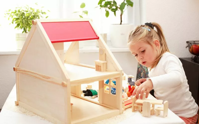 Двухэтажный деревянный кукольный домик очень удобно игрушка, так