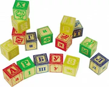 Комплект из шестнадцати деревянных кубиков с буквами русского