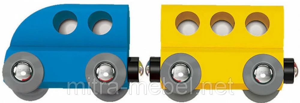 Вагончики скрепляются между собою магнитиками и весело следуют