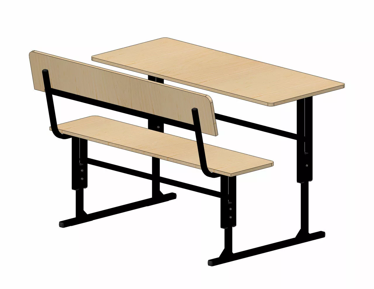 - Тип мебели: парта ученическая двухместная (стол + скамья со спинкой)